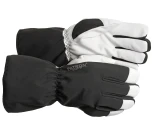 Työkäsineet vedenpitävällä vuorella tarjoavat optimaalisen suojan kylmissä ja kosteissa olosuhteissa. Otepinta on valmistettu kestävistä vuohennahkasta, ja selkämys sekä pitkä ranneke ovat pehmeää polyesteri softshelliä.
