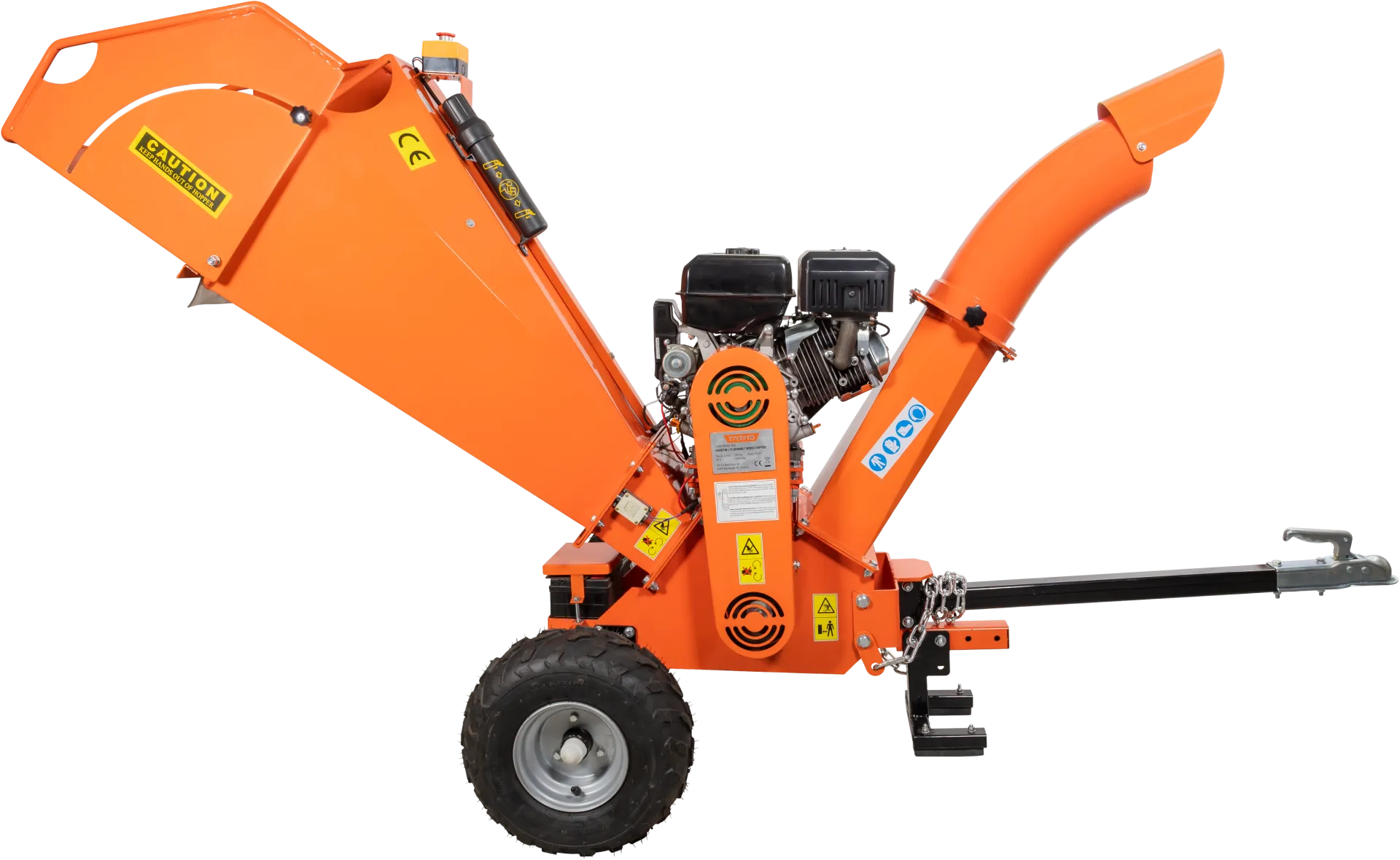 • Powerful 15 HP wood chipper with electric start and drum shredding system.