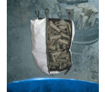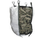 5. Verkko- ja kangassivut: - Klapisäkin kahdessa sivussa on verkkoa, mikä mahdollistaa ilman kiertämisen ja auttaa puun kuivumista. - Kaksi sivua tiivistä kangasta varmistavat, että säkin sisältö pysyy suojattuna säällä kuin säällä.