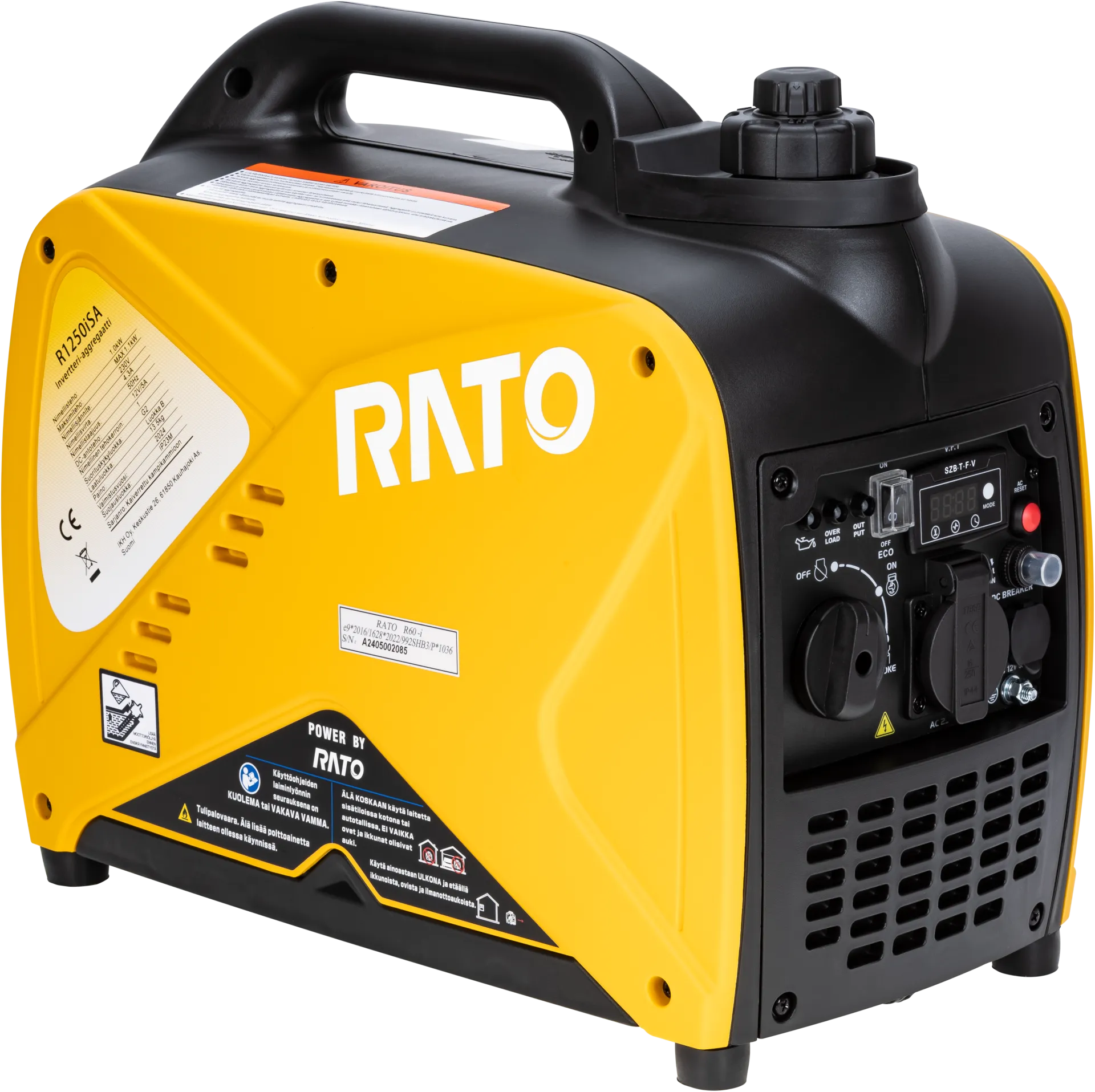 RATO R1250iS-4 invertteriaggregaatti tuottaa puhdasta siniaaltosähköä herkille 230 V laitteille, hiljainen ja kevyt käyttää.