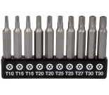 - 10 kpl ruuvauskärjet Torx (50 mm): TR10 - TR15 (x2) - TR20 (x2) - TR25 (x2) - TR27 - TR30 (x2)
