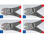 - KNIPEX TwinForce voimasivuleikkurit leikkaavat jopa Ø 4 mm lankoja ilman suurta voimankäyttöä kun toistat leikkausvaiheen 2 - 3 kertaa