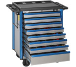 - kaksi kiinteää ja kaksi kääntyvää, jarrullista pyörää sekä kahdeksan vetolaatikkoa liukukiskoilla