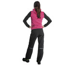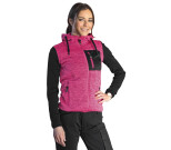 Naisten pinkki/musta fleece huppari kiinteällä hupulla. Vetoketjullinen rintatasku ja sivutasku.