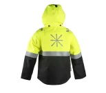 Huomiokeltainen väri ja heijastimet sekä selässä oleva heijastava painatus varmistavat, että lapsi näkyy myös hämärässä ja pimeässä.