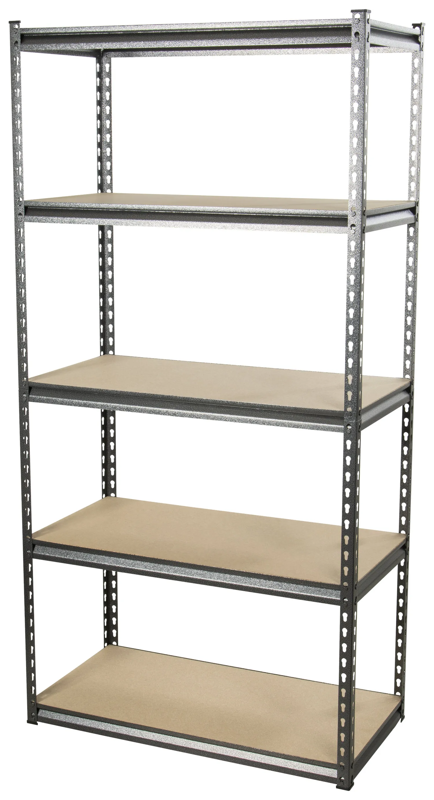 Tämä monikäyttöinen varastohylly on suunniteltu kestämään kovaa käyttöä ja tarjoamaan luotettavaa säilytystilaa. Tukeva teräsrakenne ja korkealaatuiset lastulevyhyllyt tekevät hyllystä erinomaisen valinnan niin kotivarastoihin kuin ammattilaiskäyttöön. Hyllystössä on viisi säädettävää hyllytasoa, joiden korkeutta voi muokata 3,5 cm välein, jotta se sopii juuri sinun tarpeisiisi. Voit myös tarvittaessa jakaa hyllykön kahteen erilliseen tasoon. Hyllyn korroosionkestävä jauhemaalipinta takaa pitkäikäisyyden, ja kokoaminen sujuu helposti ilman pultteja. Jokainen hyllytaso kestää jopa 750 kg painoa.