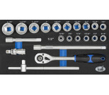 - 16 kpl 1/2 lyhyet hylsyt (pituus 36 mm): 5/16" - 3/8" - 7/16" - 15/32" - 1/2" - 9/16" - 5/8" - 11/16" - 3/4" - 13/16" - 7/8" - 15/16" - 1" - 1-1/16" - 1-3/16" - 1-1/4"