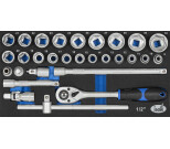 - 21 kpl 1/2 lyhyet hylsyt (pituus 36 mm): 8 - 10 - 11 - 12 - 13 - 14 - 15 - 16 - 17 - 18 - 19 - 20 - 21 - 22 - 23 - 24 - 26 - 27 - 28 - 30 - 32 mm