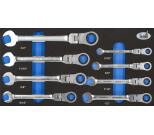 - 8 kpl räikkälenkkiavaimet (nivelletyt): 5/16" - 3/8" - 7/16" - 1/2" - 9/16" - 5/8" - 11/16" - 3/4"